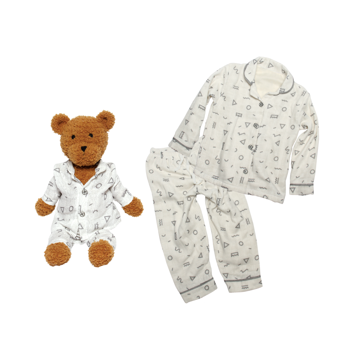 Pyjama für Teddybär | 100% Baumwolle, 2-lagiger Musselinstoff |